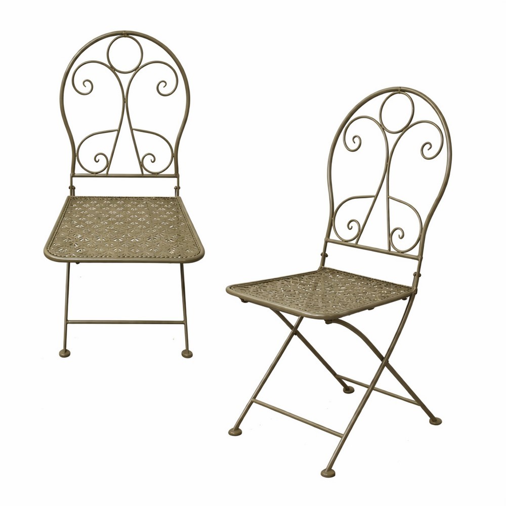 Diese Gartenstühle im Vintage-Stil sind perfekt für kleine Balkone, romantische Terrassen oder den Garten im Landhausstil geeignet. Das filigrane Metallgestell, die Sitzfläche mit dekorativem Lochmuster und Schnörkel in der Rückenlehne verleihen den Stühlen nostalgischen Charme.