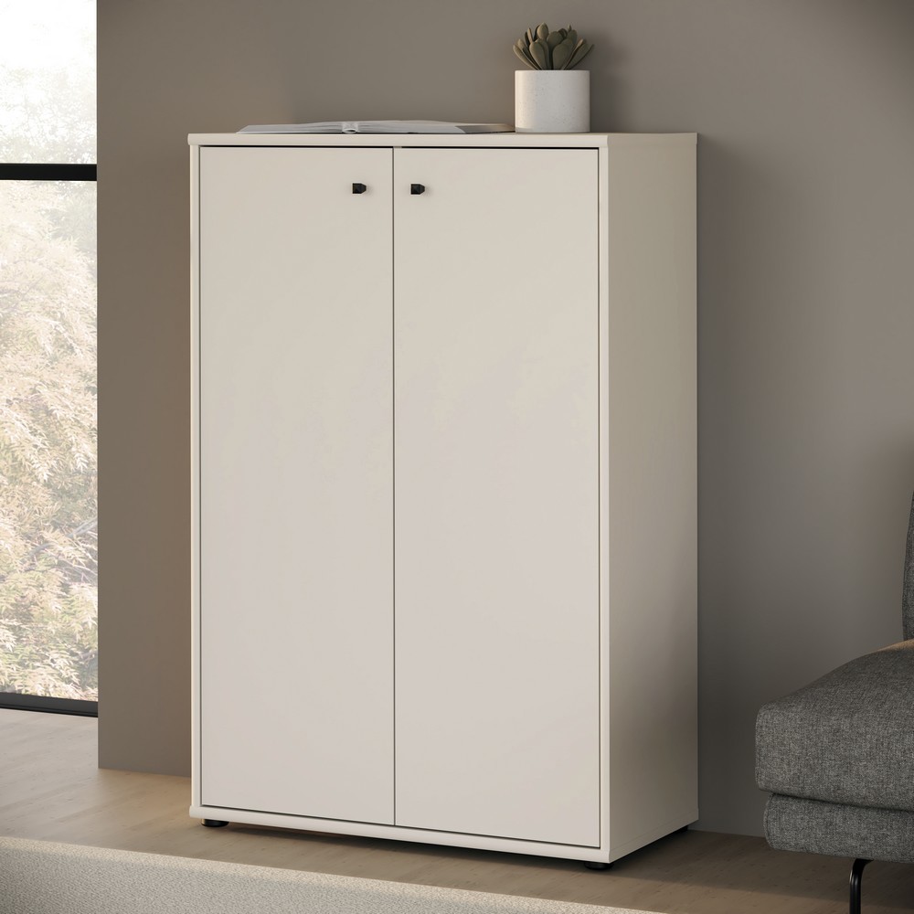 Kommode Tempra in Sand Nachbildung, mit zwei Türen ausgestattet.