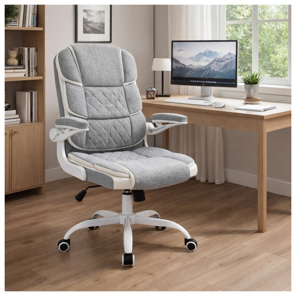 Besonders praktisch: Die Armlehnen lassen sich mit wenigen Handgriffen hochklappen. So kann der Stuhl vollständig unter den Schreibtisch geschoben werden – das spart wertvollen Platz und schafft Ordnung.