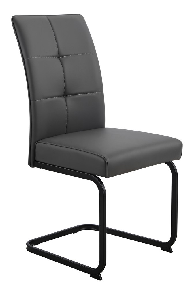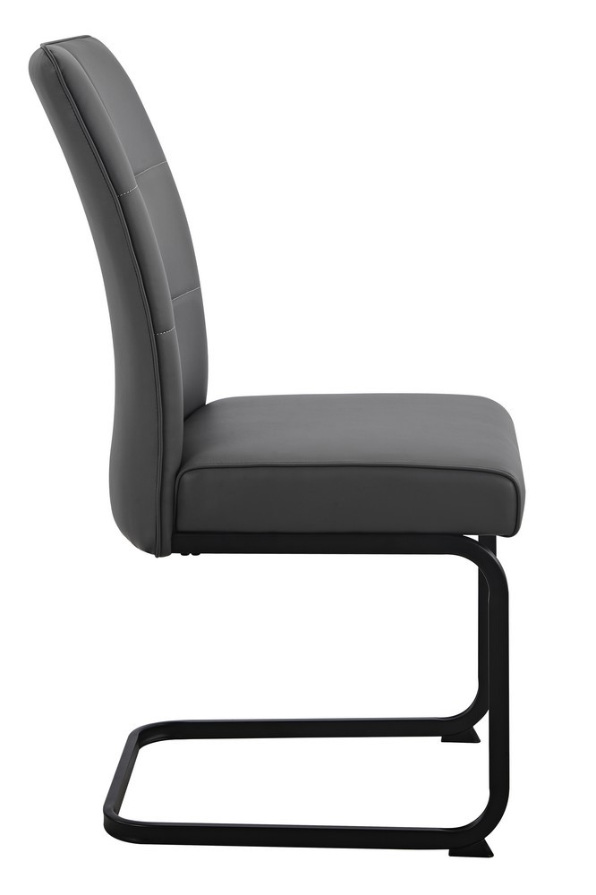 Schwingstuhl Malta in grauem Kunstleder. Sitz und Rücken sind fest gepolstert, Rücken mit Steppnähten ausgestattet.