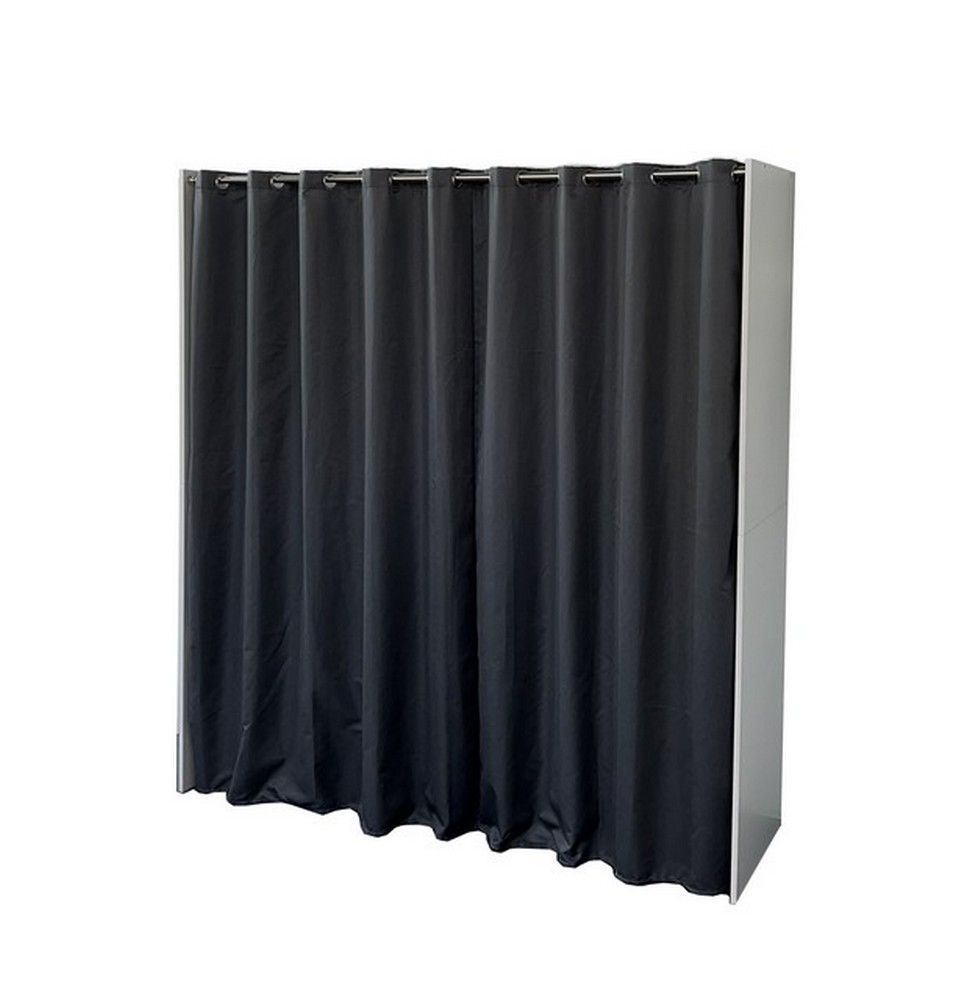 - Ausführung: Weiss NB, Stoff Grau, B/H/T ca. 132-170x185x50 cm Stangen aus Metall, mit Vorhang