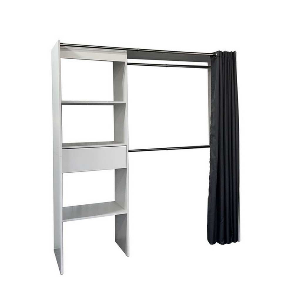 Der integrierte Vorhang schützt Ihre Kleidung vor Staub und sorgt für ein aufgeräumtes Erscheinungsbild – perfekt abgestimmt auf moderne Wohnkonzepte. Die helle, zeitlose Optik fügt sich harmonisch in unterschiedlichste Einrichtungsstile ein und verleiht dem Raum eine freundliche Atmosphäre.