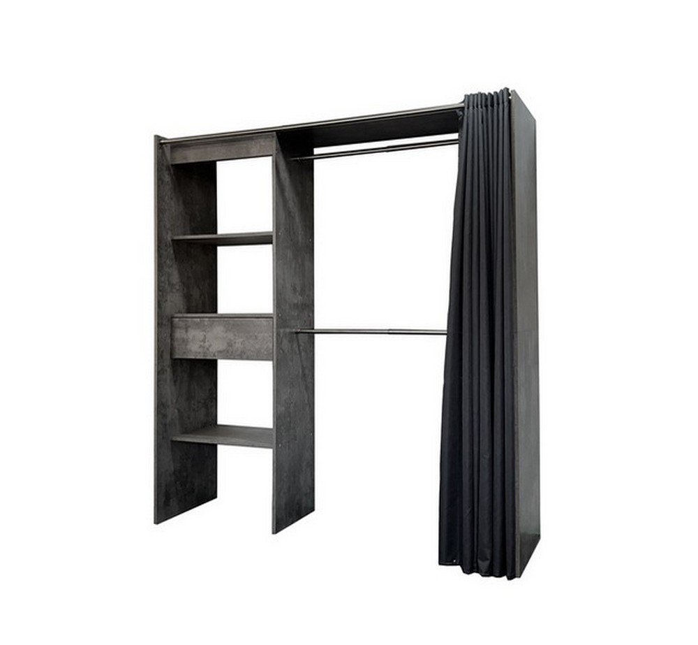 Produktinformationen "Garderobe Thekla Beton NB mit Vorhang Offener Kleiderschrank"