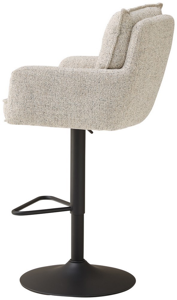 Barhocker Sofia Young mit Strukturstoffbezug in Beige. Untergestell Metall Schwarz matt. Dieser formschöne und bequeme Barhocker Sofia Young ist mittels Gasdruckfeder höhenverstellbar.