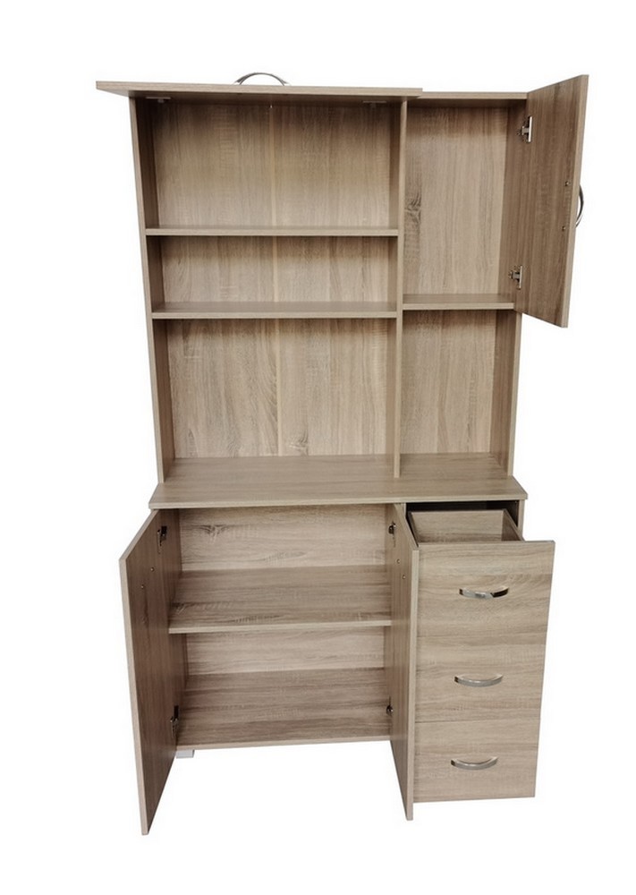 - Ausführung: 100*60*180 cm, Küchenbuffet, drei Schubladen,drei Schrankfächer, Mikrowellenfach plus zwei Regalfächer
