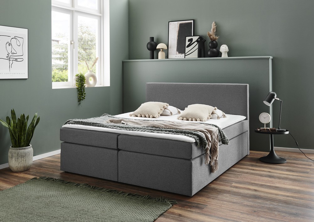 Produktinformationen "Boxspringbett Aspen Bett Stoffbezug Silber Bonellfedern"
