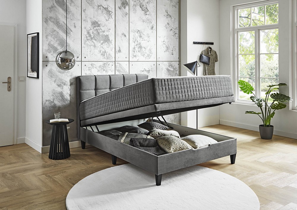 Boxbett Wien Boxspringbett Bett Stoff Grau 140 x 200 cm