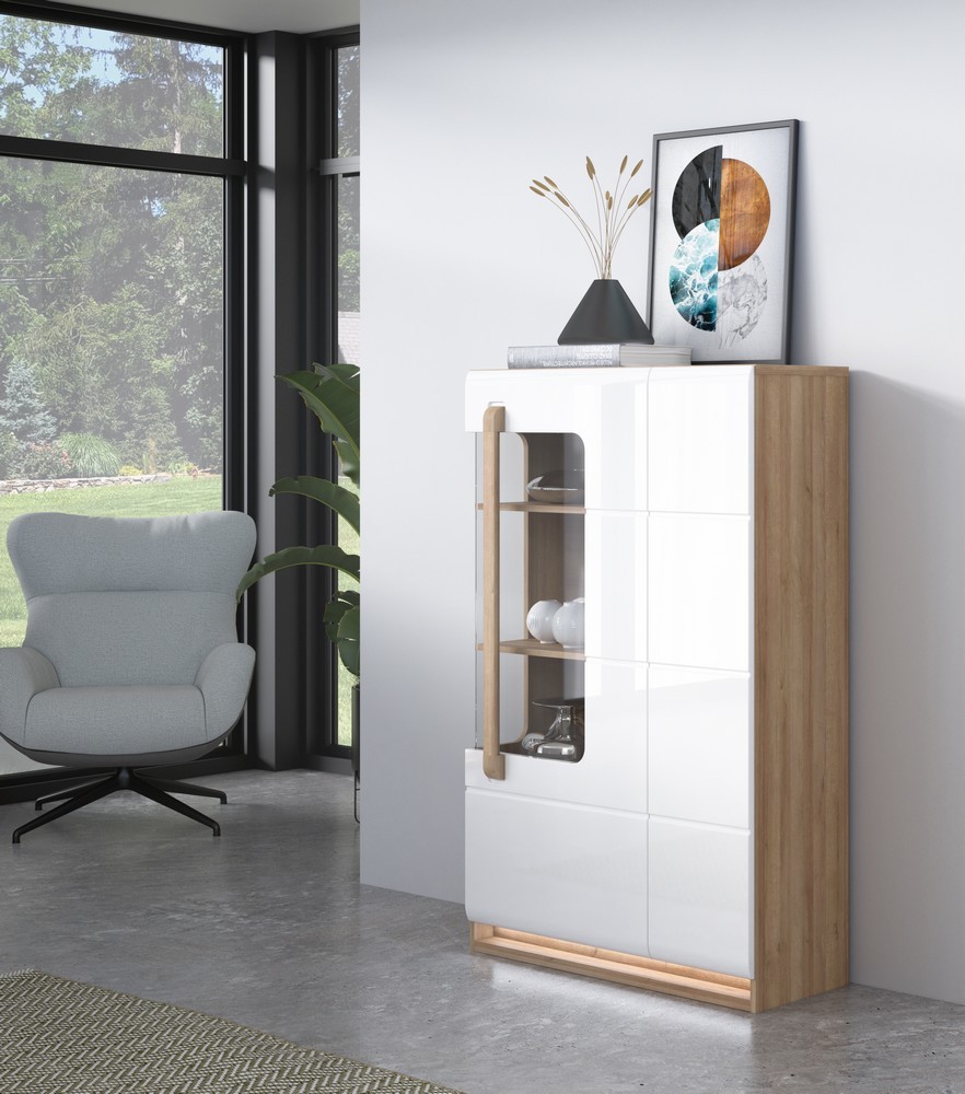 - Ausführung: Riviere Oak Nachbildung, 1 Tür, 1 Glastür, Inkl. LED BHT ca. 89,9 x 139,6 x 34,3 cm