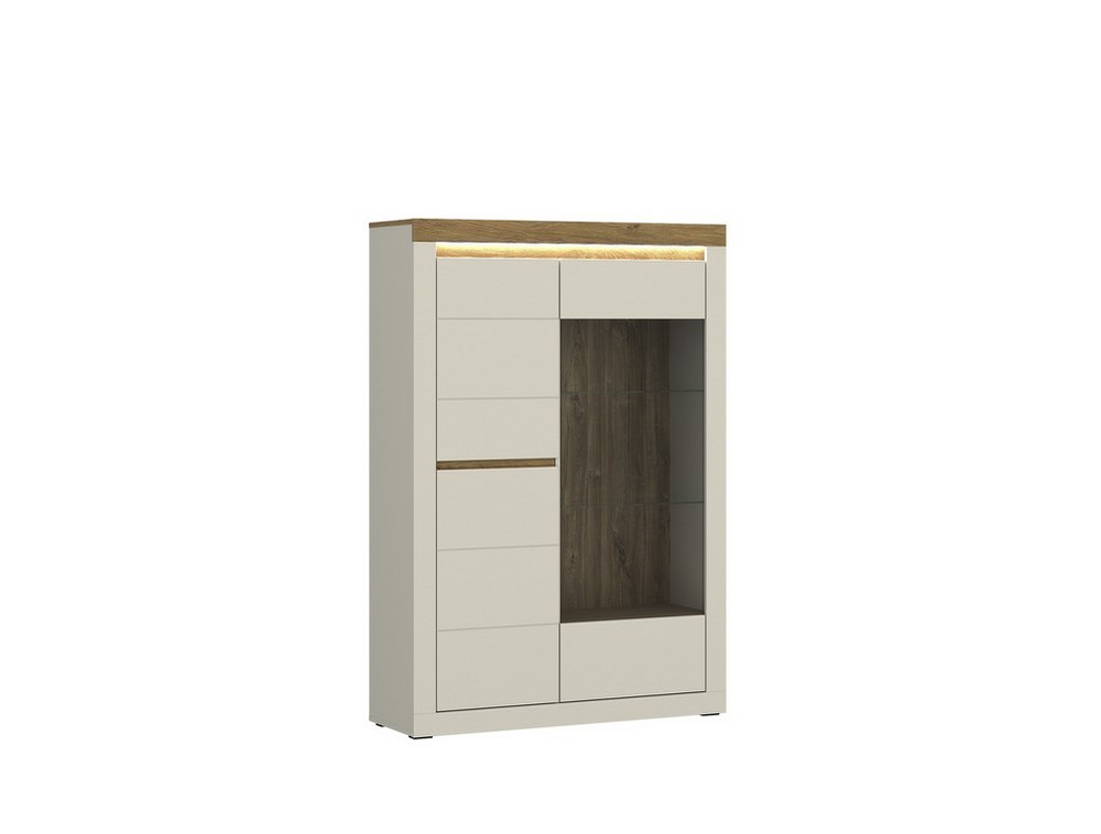 Lassen Sie Ihr Wohnzimmer in neuem Licht erstrahlen mit diesem sehr schönen Möbelstück. Dieses 2türige Highboard Naxxar in Kaschmir und Eiche Stone Nachbildung ist mit dezenter Beleuchtung ausgestattet. Hinter einer teilweise verglasten Tür können Sie Ihre Lieblingsstücke perfekt in Szene setzen.
