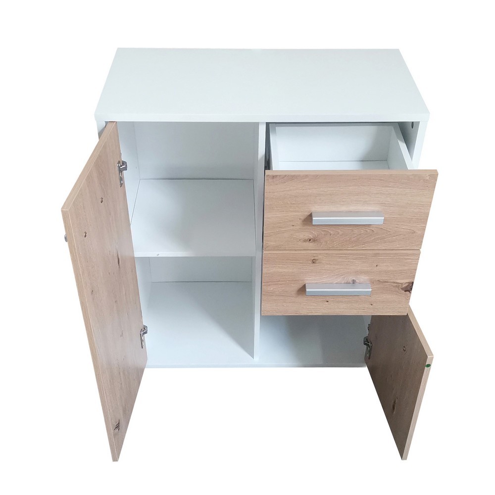 - Ausführung: Artisan Eiche Weiss NB. 2trg., 2SK B/H/T ca. 60x70x30 cm