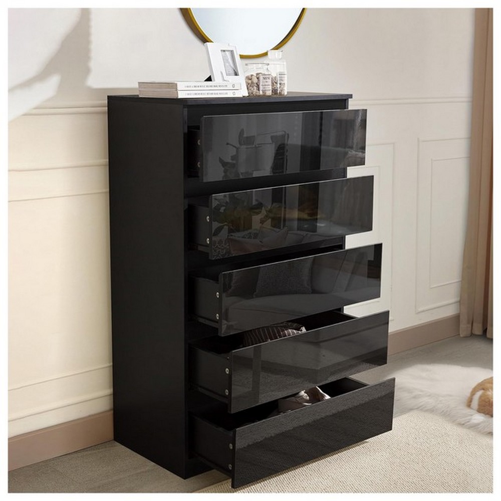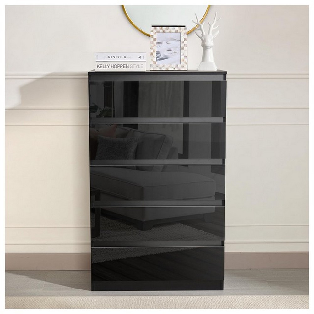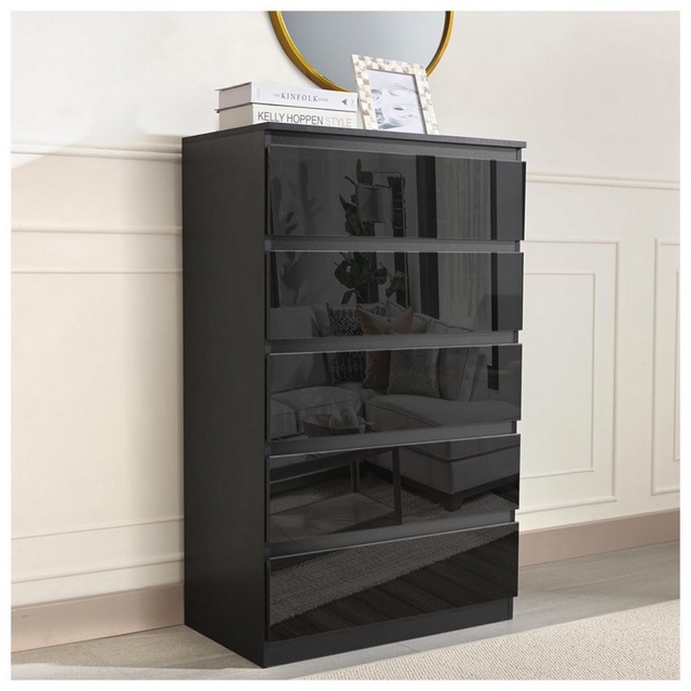 Produktinformationen "Kommode Kenji MDF Schwarz HG mit 5 Schubkästen"