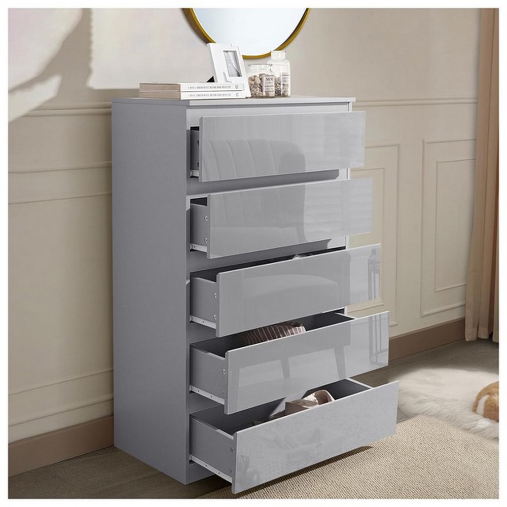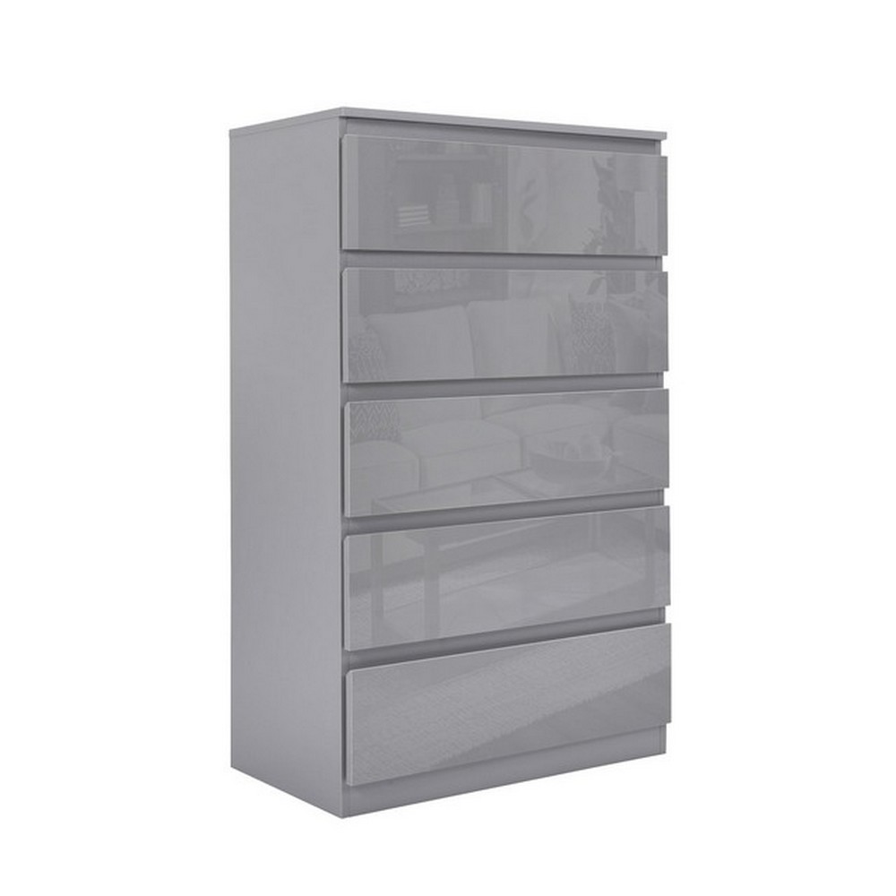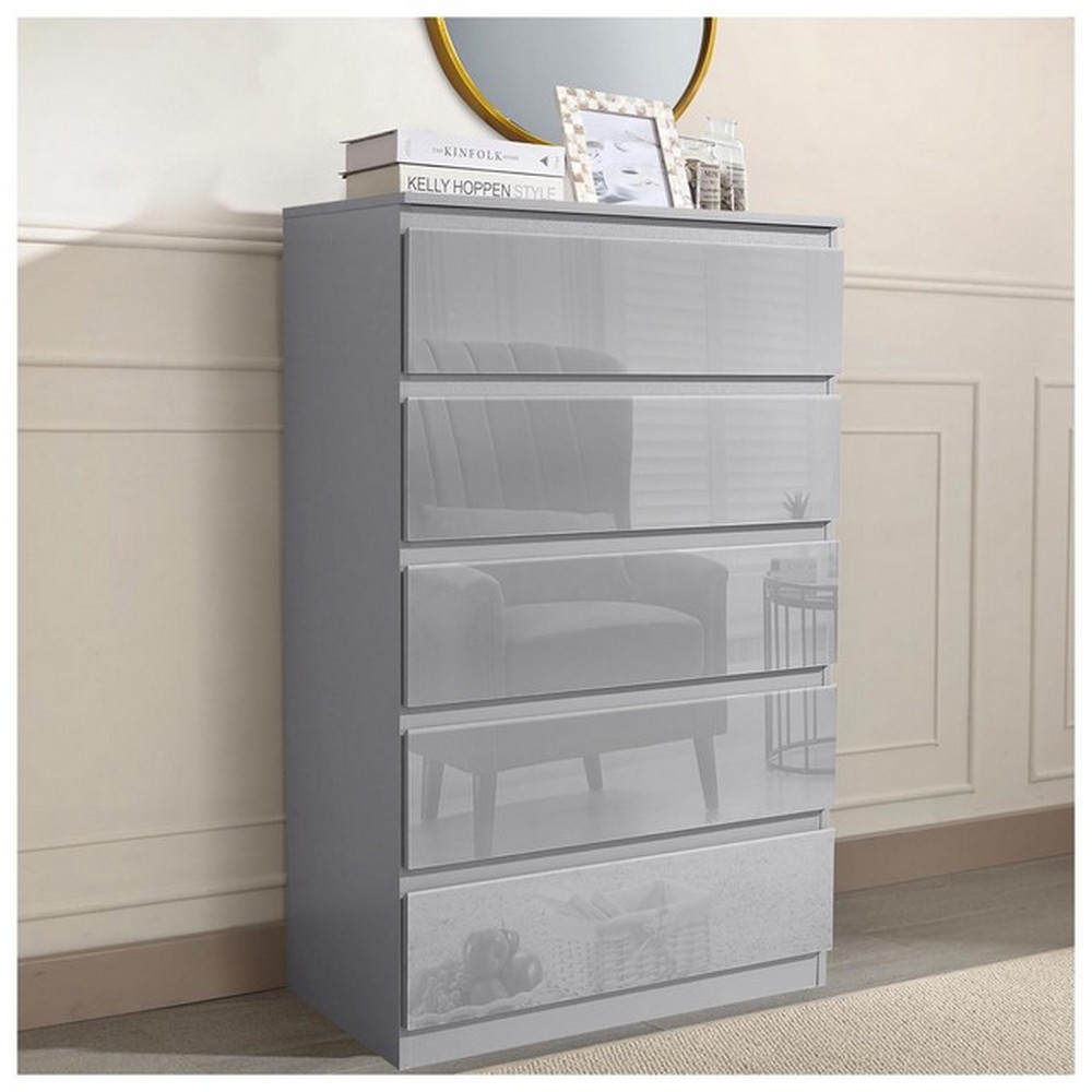 Produktinformationen "Kommode Kenji Grau Hochglanz mit 5 Schubkästen"