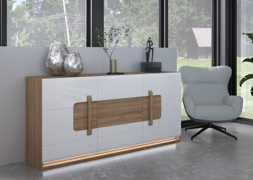 - Ausführung: Riviere Oak Nachbildung, 3 Türen, 1 Schubkasten, inkl. LED BHT ca. 194,6 x 91,6 x 41,5 cm