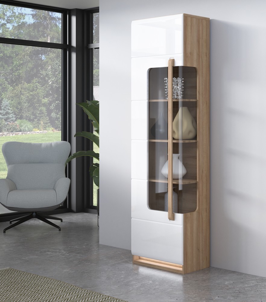 - Ausführung: Riviere Oak Nachbildung, 1 Glastür, inkl. LED, BHT ca. 60,2 x 210 x 34,3 cm