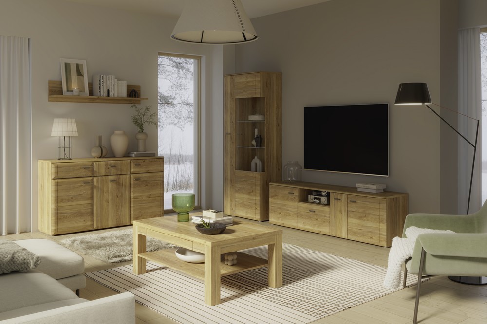 Produktinformationen "Vitrine Akinori Wohnwand Mauvella Eiche NB"