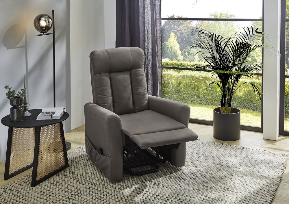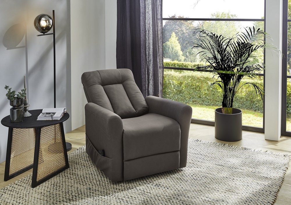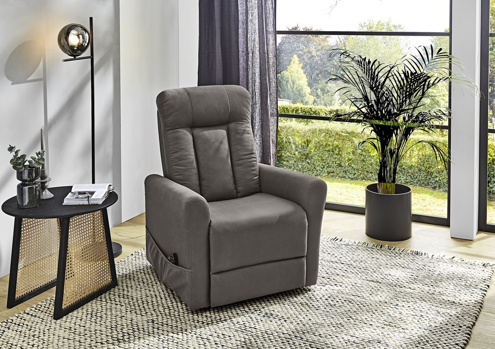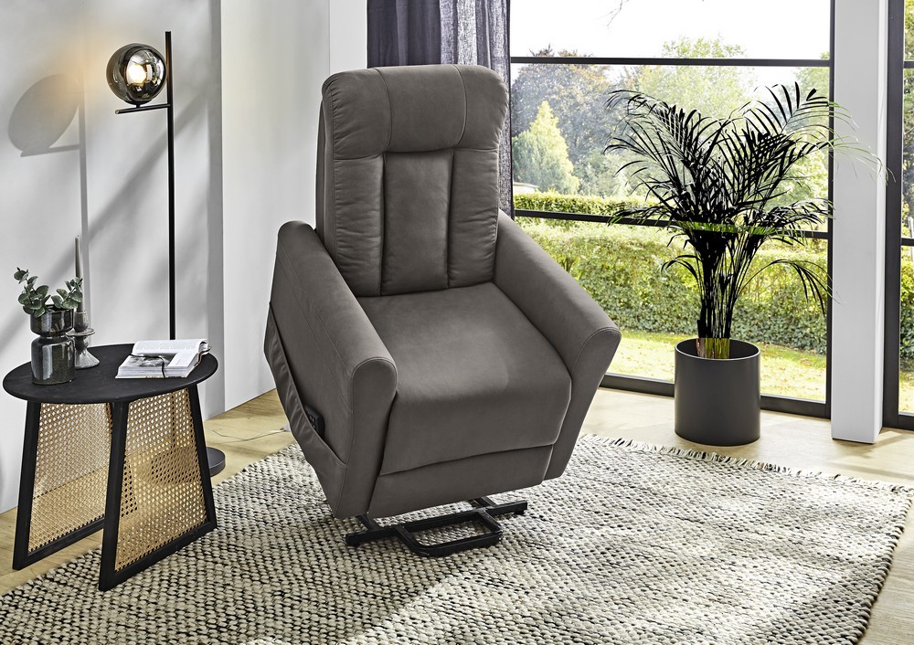 - Ausführung: Bezug: Microfaser Taupe,elektr. Aufstehhilfe, 2 Motoren, Sitzhöhe ca. 50cm, Sitztiefe ca. 53cm, Sitzbreite ca. 55cm, BHT: ca. 83x105x86-160 cm, max. Belastbarkeit 110kg