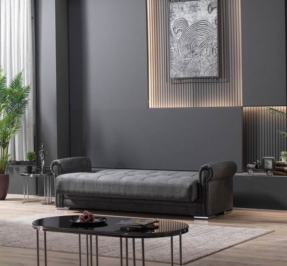 Produktinformationen "3-Sitzer Rio Sofa Couch Schlafsofa Stoff Grau Federkernpolster"