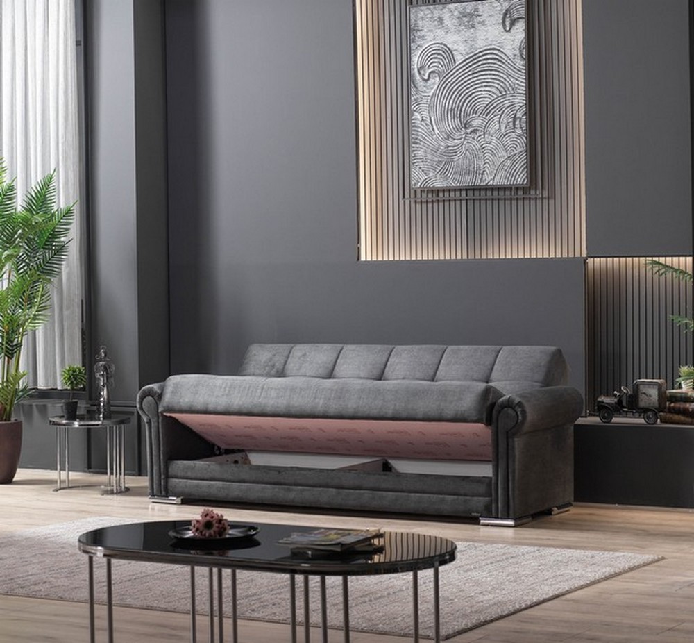 Kippfunktion ausgestattet, im Nu verwandeln Sie das Sofa in einen Schlafplatz. Ein Bettkasten bietet Ihnen zusätzlichen Stauraum für Ihre Utensilien.