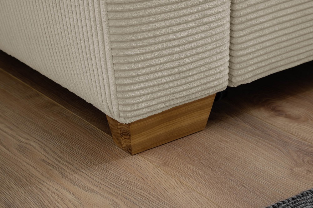 - Ausführung: Bezug Stripes 8622 natur, inklusive 3 Rückenkissen, inkl. je 1 mittleres Kissen/Zierkissen/Plaid, inkl. 2 Nierenkissen, Polsterung aus Hochwert-Polyschaum, Wellenunterfederung, Federkern, Komfort-Sitzhöhe, Hochschläfer-Bettauszug, Rücken und Liegefläche echt, Holzfüße eichefarbig, Stellfläche 230x191cm, Liegefläche 195x180cm,
