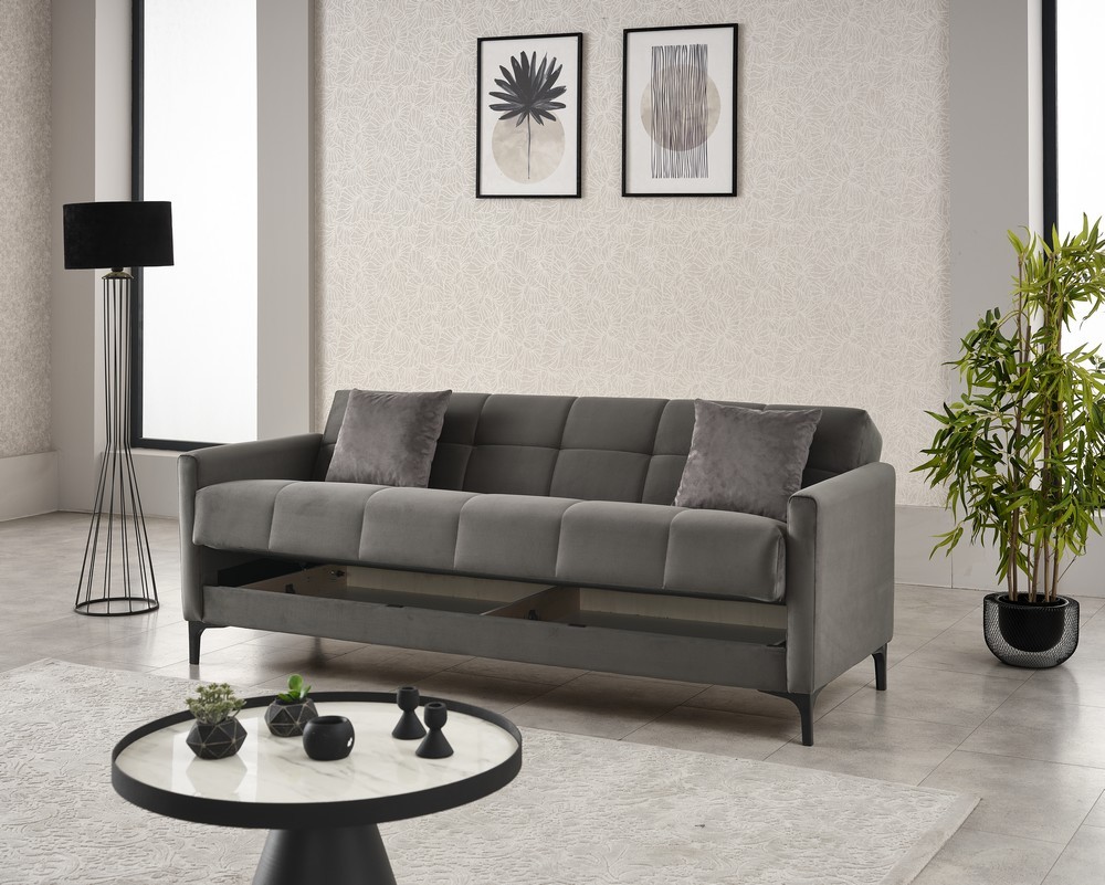 Produktinformationen "Funktionssofa Peru Stoff Grau Schlafsofa mit Bettkasten"