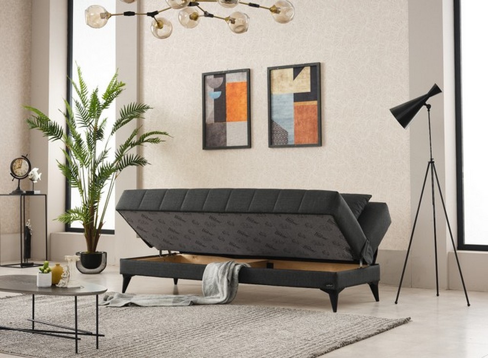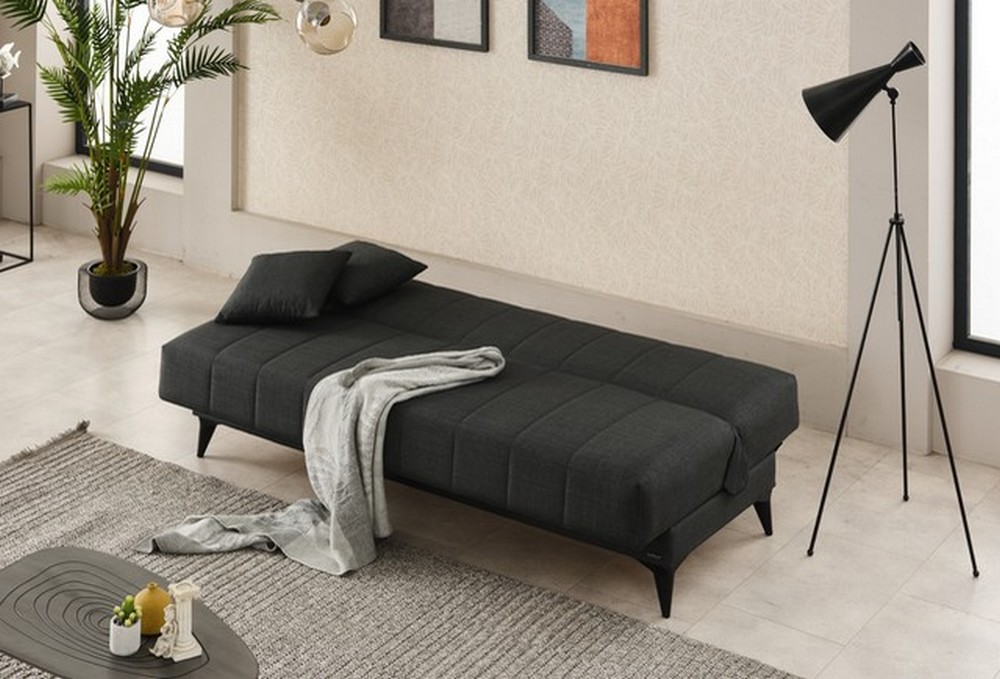 Produktinformationen "Schlafsofa Action Stoff Schwarz Sofa mit Bettkasten"