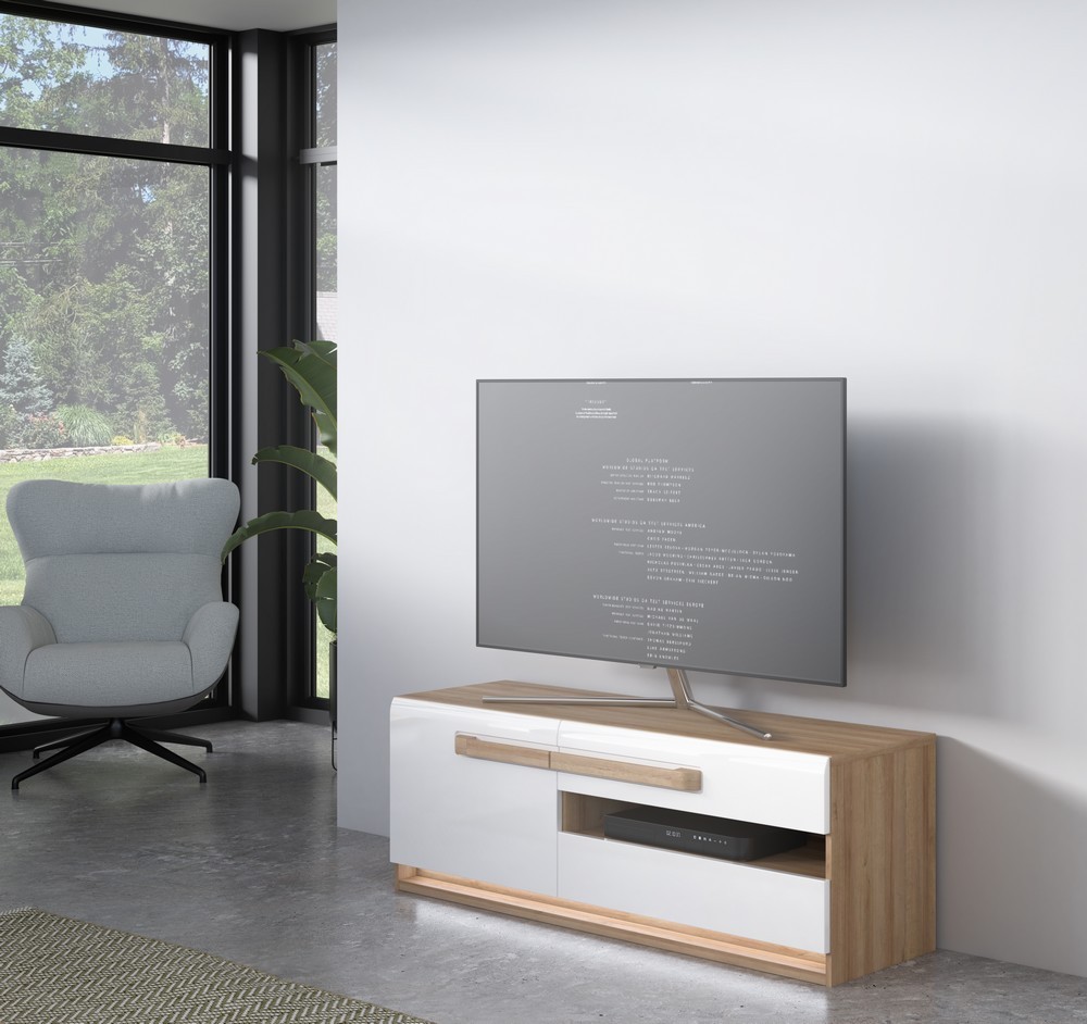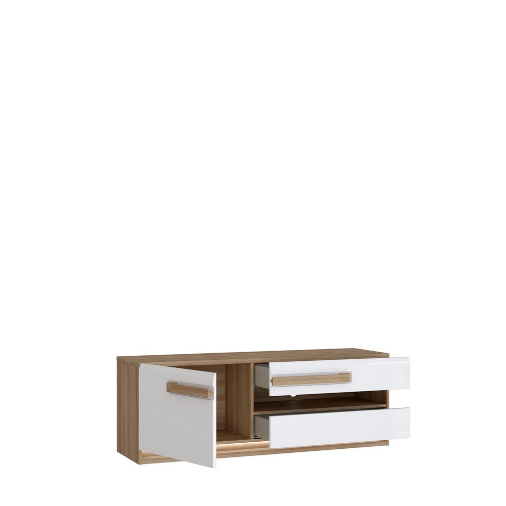 - Ausführung: Riviere Oak Nachbildung, 1 Tür, 2 Schubkasten, inkl. LED, BHT ca. 139,9 x 50 x 41,5 cm